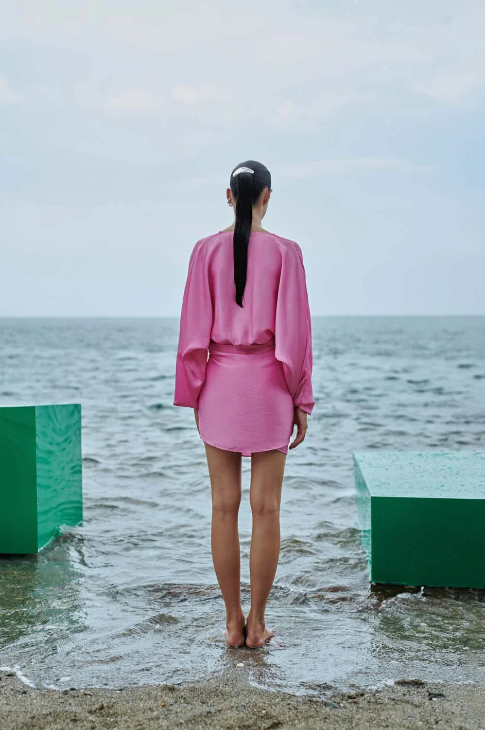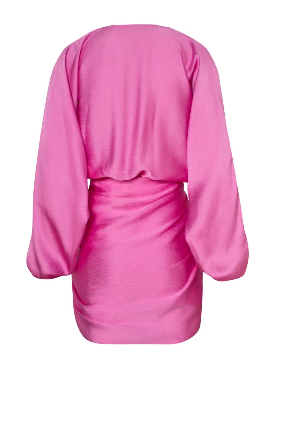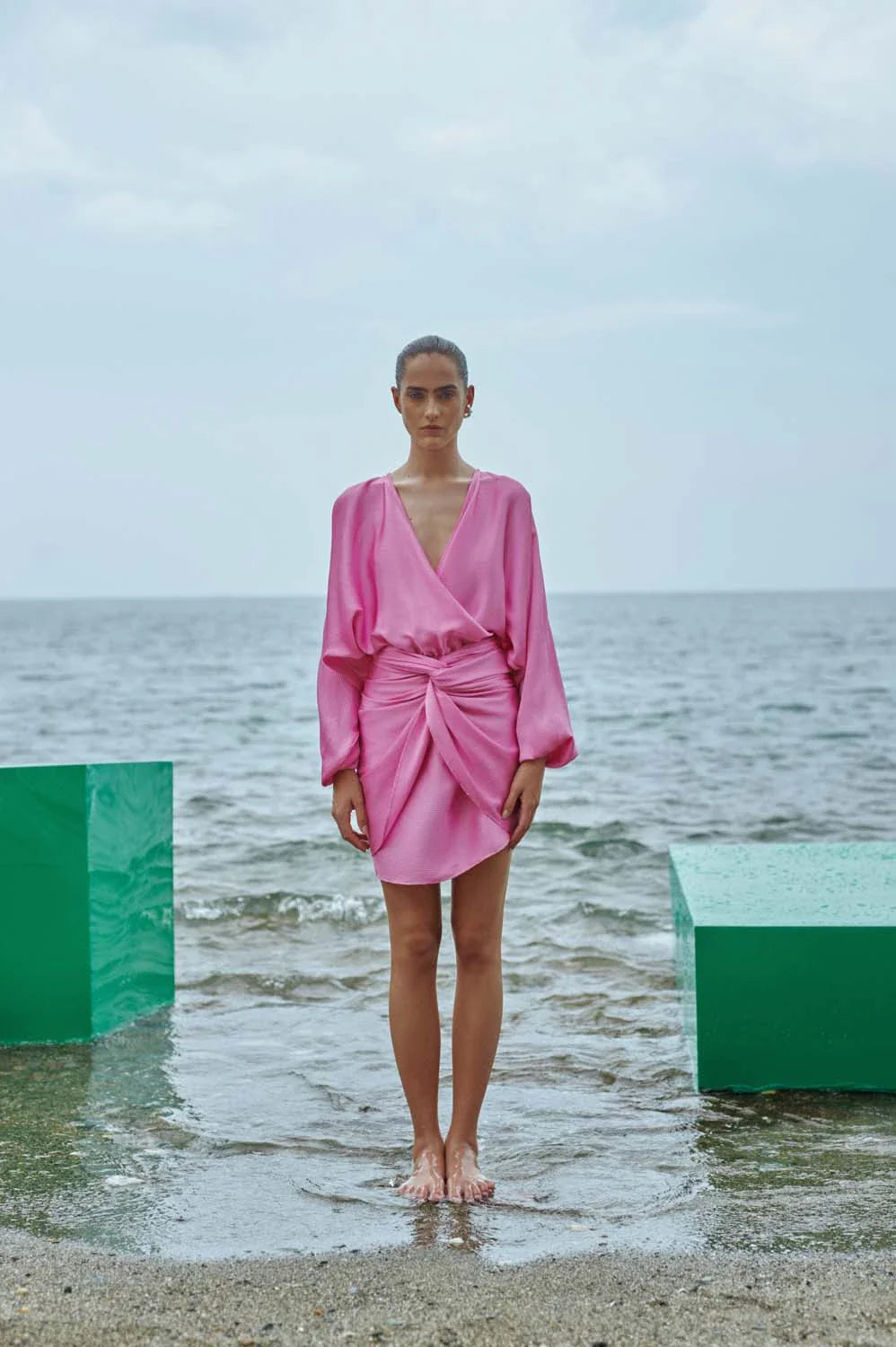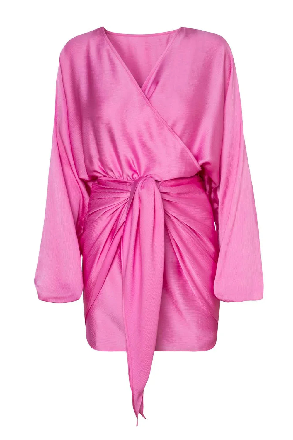 Introducing the "Alexa Mini Dress" in Roses – this flirty mini dress features a plunging neckline, ruched detailing, and a chic front knot. Its vibrant hue and playful silhouette create a bold, feminine look perfect for evenings out. A versatile piece that effortlessly combines elegance and modern charm.