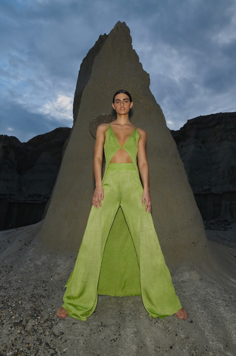 Introducing the "Clarissa Pants" in Edamame – These knitted wide-leg pants feature a comfortable elastic waistband and a lined design for added sophistication. The soft knit fabric offers both comfort and style, making them perfect for a relaxed, chic look that works effortlessly for any occasion.