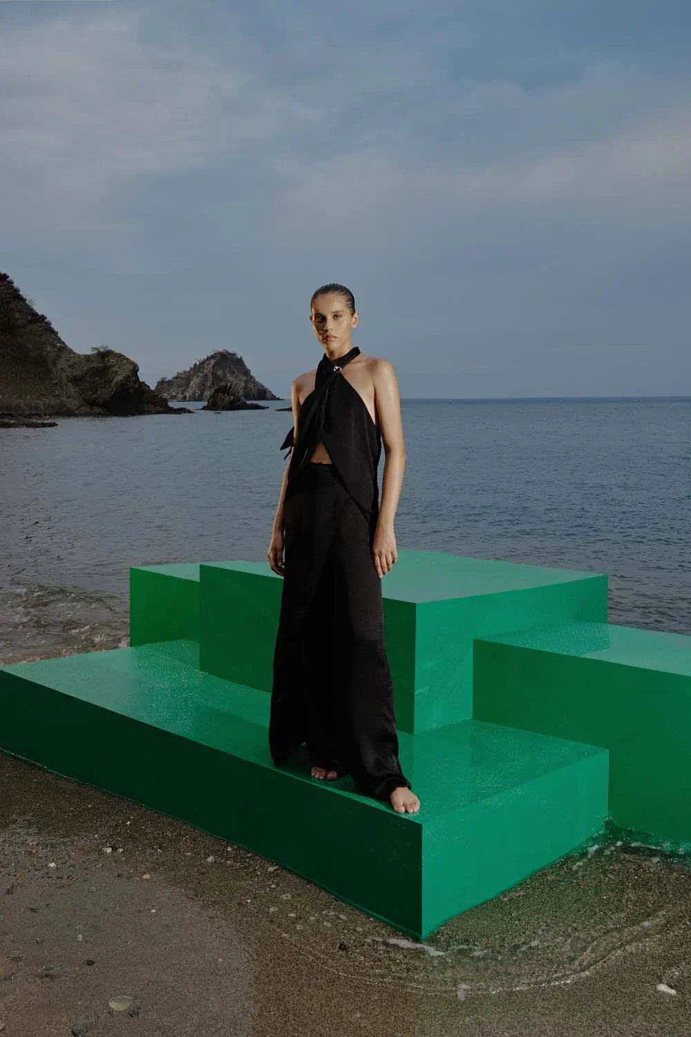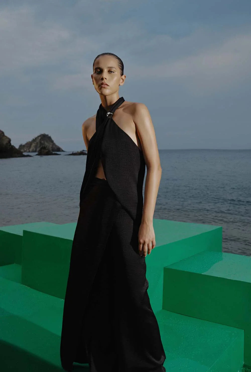 Introducing the "Cloud Pants" in Coal – these high-waisted flared pants feature an asymmetric layered detail, adding a contemporary twist. The wide-leg silhouette offers a chic, comfortable fit. Perfect for both casual and formal settings, they combine modern design with timeless elegance.