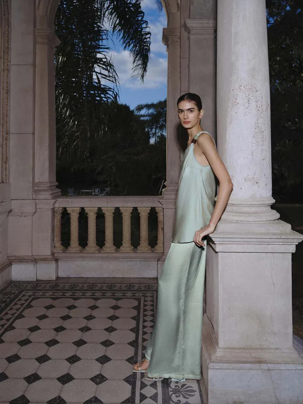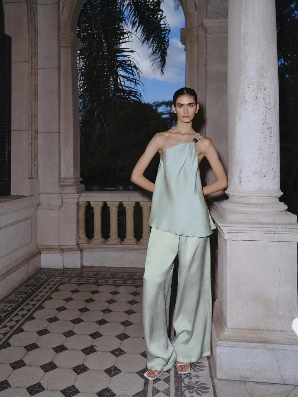 Introducing the "Ferrat Pants" in Matcha – straight-leg pants featuring a reinforced waistband and back darts for a structured fit. Designed with a side zipper closure for a seamless finish. Unlined for a lightweight feel.